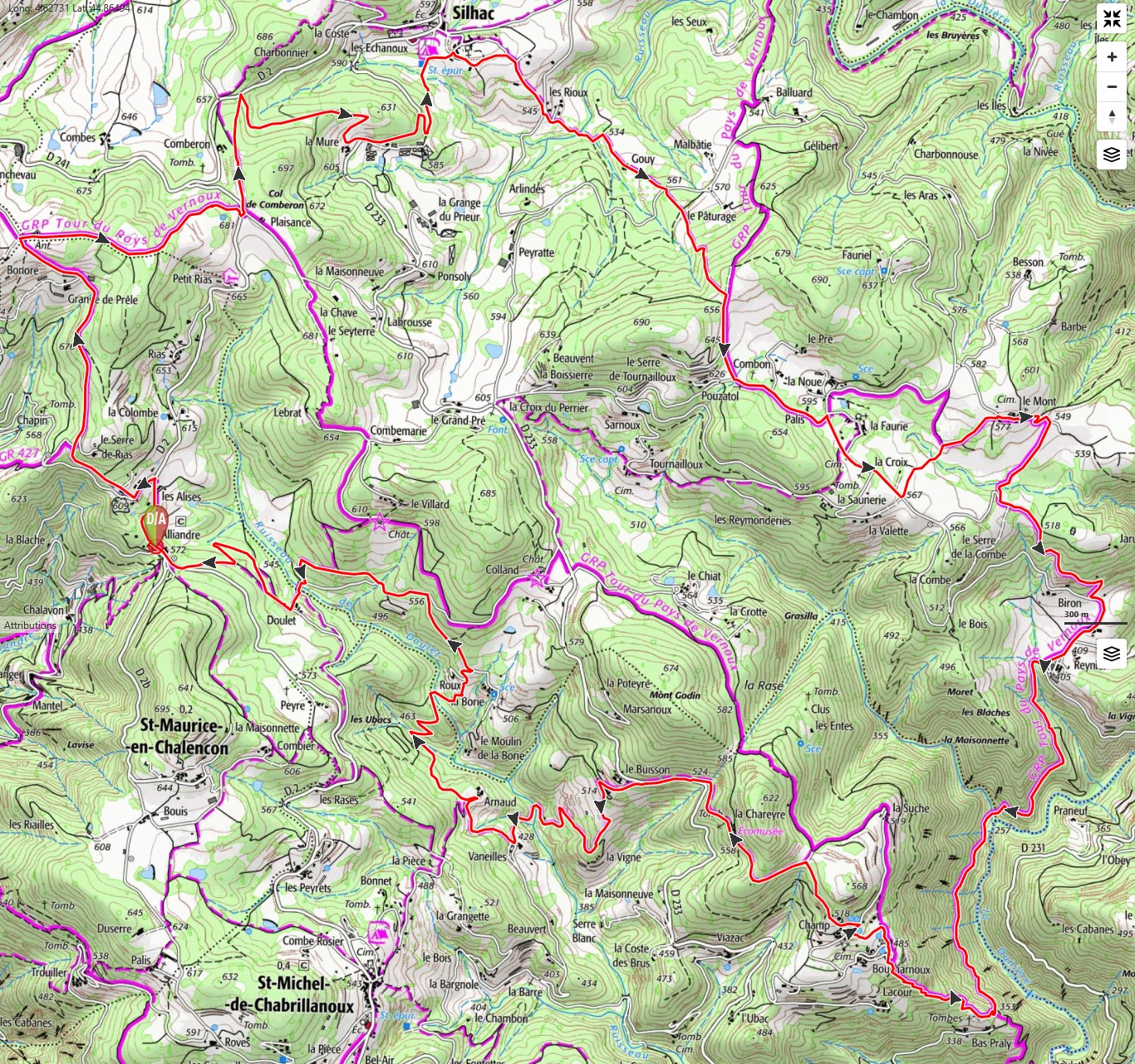 Circuit Rouge (carte IGN) de 23 km : Voir la carte du parcours